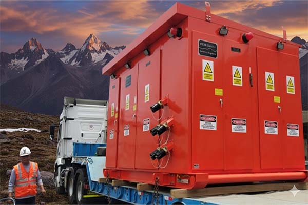 1000 kVA high altitude dry-type transformer for 5000 m installation. Varelen provides reinforced insulation, low partial discharge, and altitude-corrected thermal design for extreme environments.